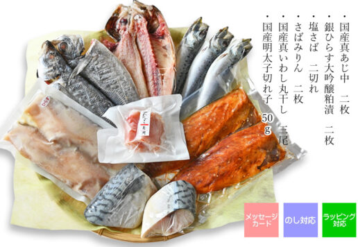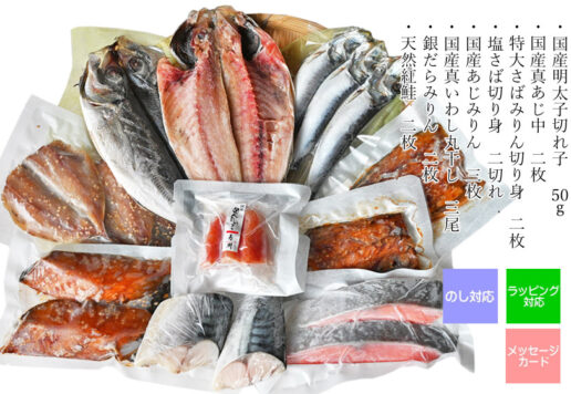 鮮度のいい干物・国産明太子・天然紅鮭・瀬戸内ちりめん等、先様に合せ、上質の海産物の詰め合わせができる海産物屋です。