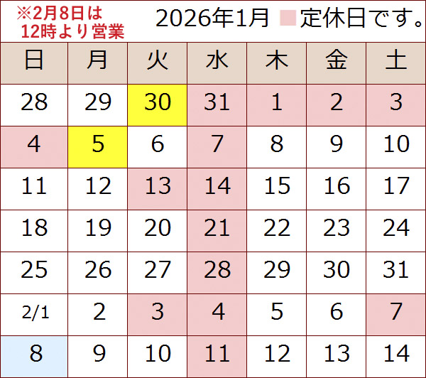 2026年1月の営業日です 2026年1月の営業日です 2026年1月は第一火曜日を営業しますので、第二火曜日13日にお休みをいただきます。 また、2月7日(土)に祝事でお休みをいただきます。 翌8日(日曜日)は12時からの営業とさせていただきます。どうぞよろしくお願いいたします。 『かれいみりん』は在庫無くなり次第、販売終了となります。 また、送料込みセットも『新送料込みセット』発売まで、一部セットは販売停止とさせていただきます。 【 通常時 】 平日は9時~18時 日祭日は9時~17時の営業です。 Post Share Hatena LINE RSS feedly Pin it note