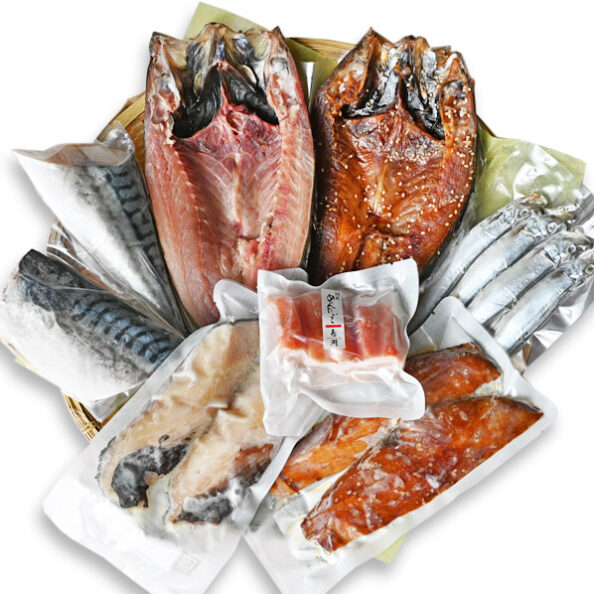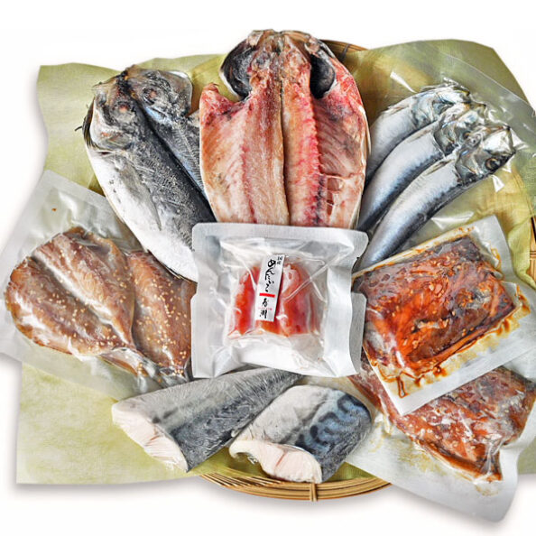 いただく方を想像して詰め合わせました。明太子や干物などを各セットに追加してオリジナルセットもお作りします。